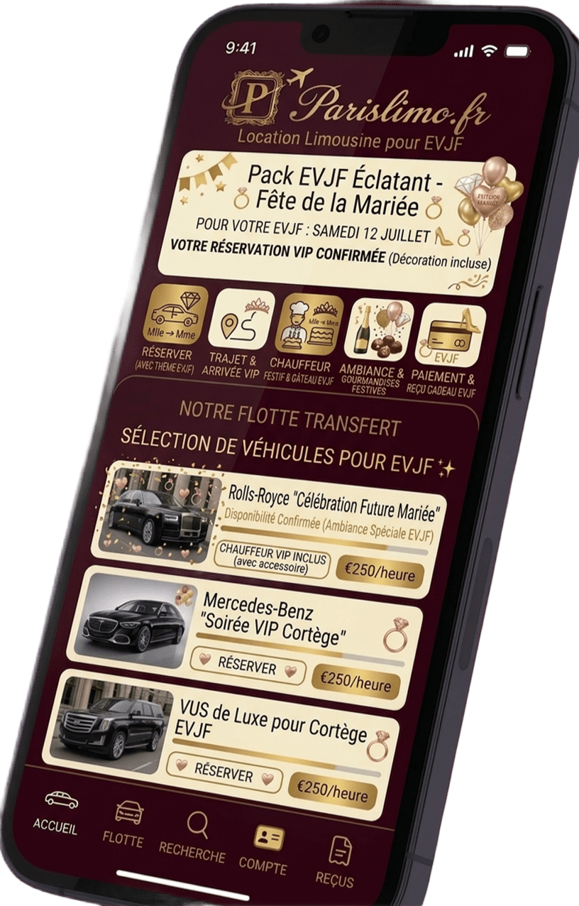 Réservez votre limousine avec chauffeur pour EVJF sur Paris en ligne.